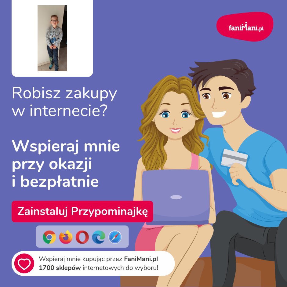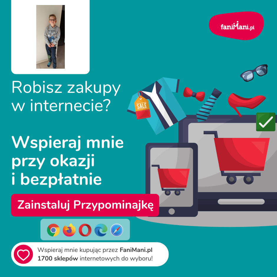Pomagaj bezpłatnie przy okazji zakupów w internecie Płacisz tyle, co zawsze, a średnio 2,5% wartości Twoich zakupów trafi do organizacji, którą wybierzesz