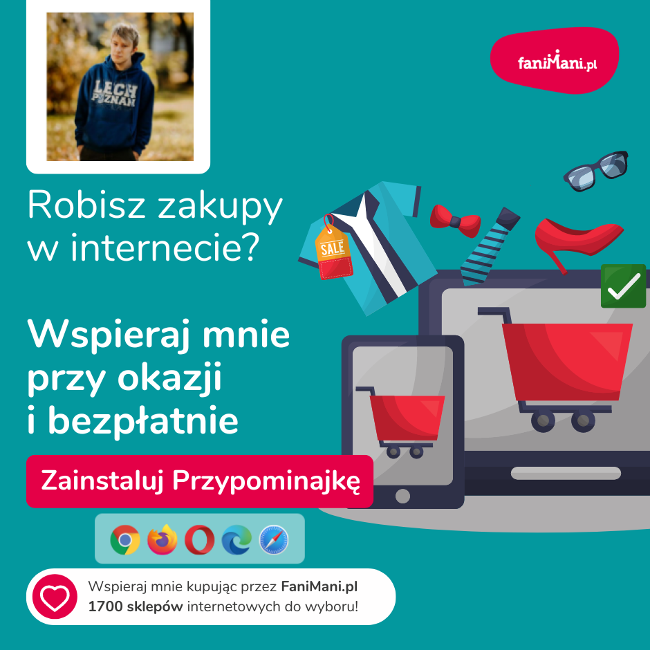 Udostępnij materiały i pomóż Adrian Jędrzejczak zbierać darowizny od zakupów online