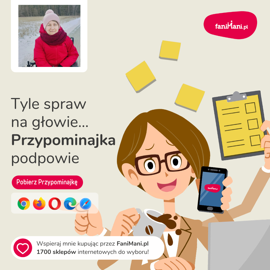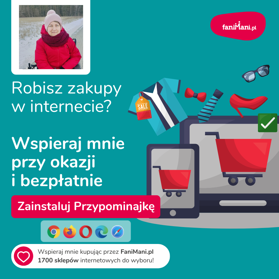 Udostępnij materiały i pomóż Agnieszka Piotrowska zbierać darowizny od zakupów online