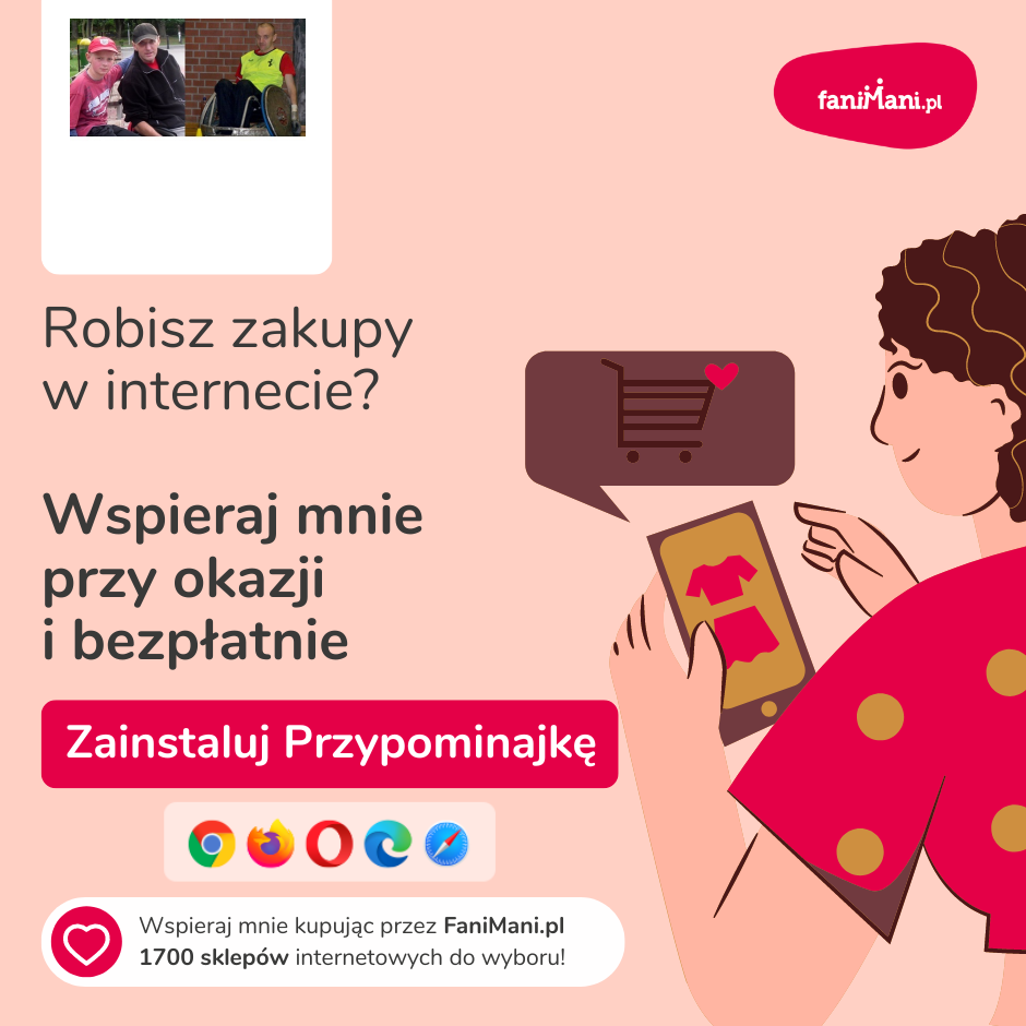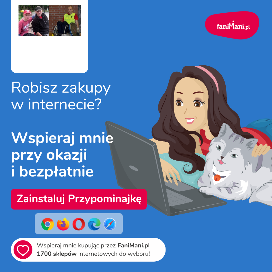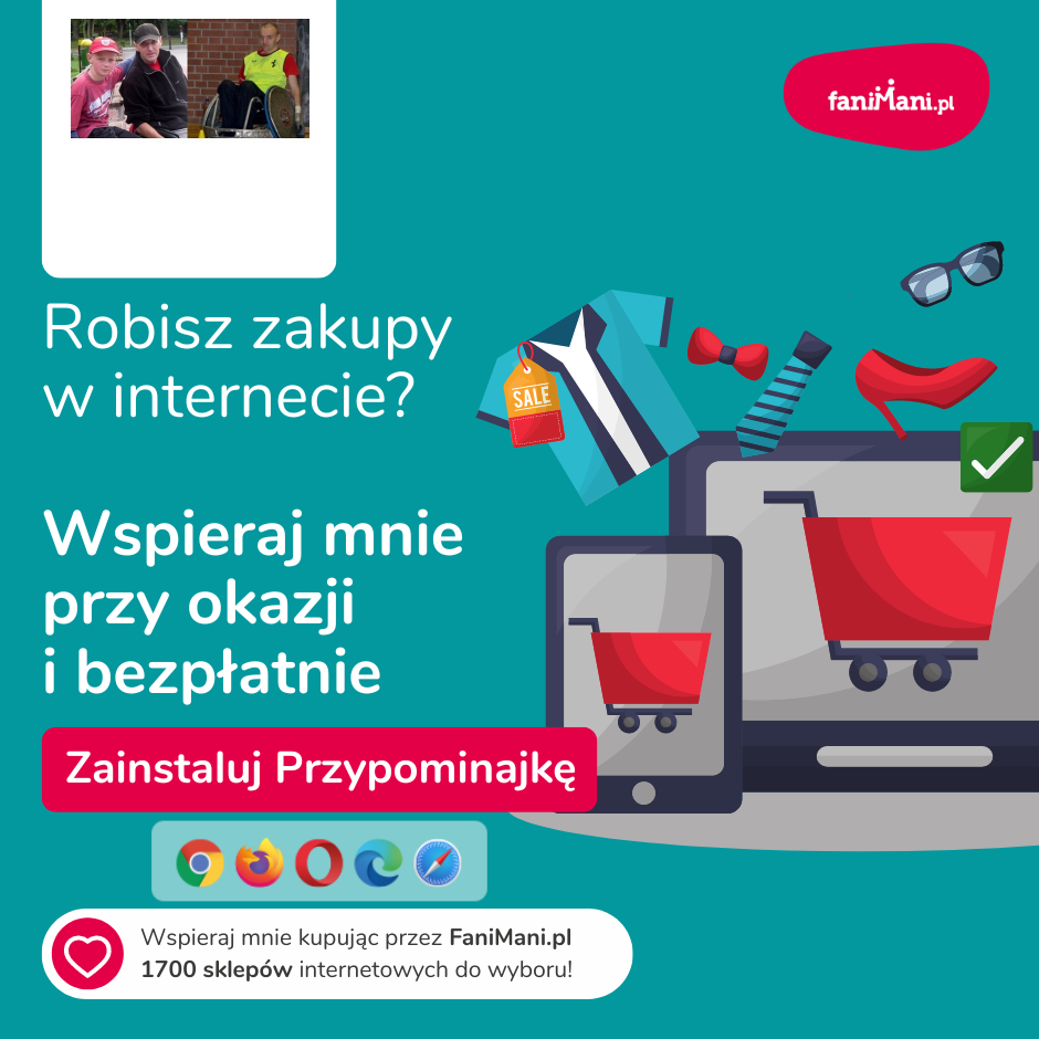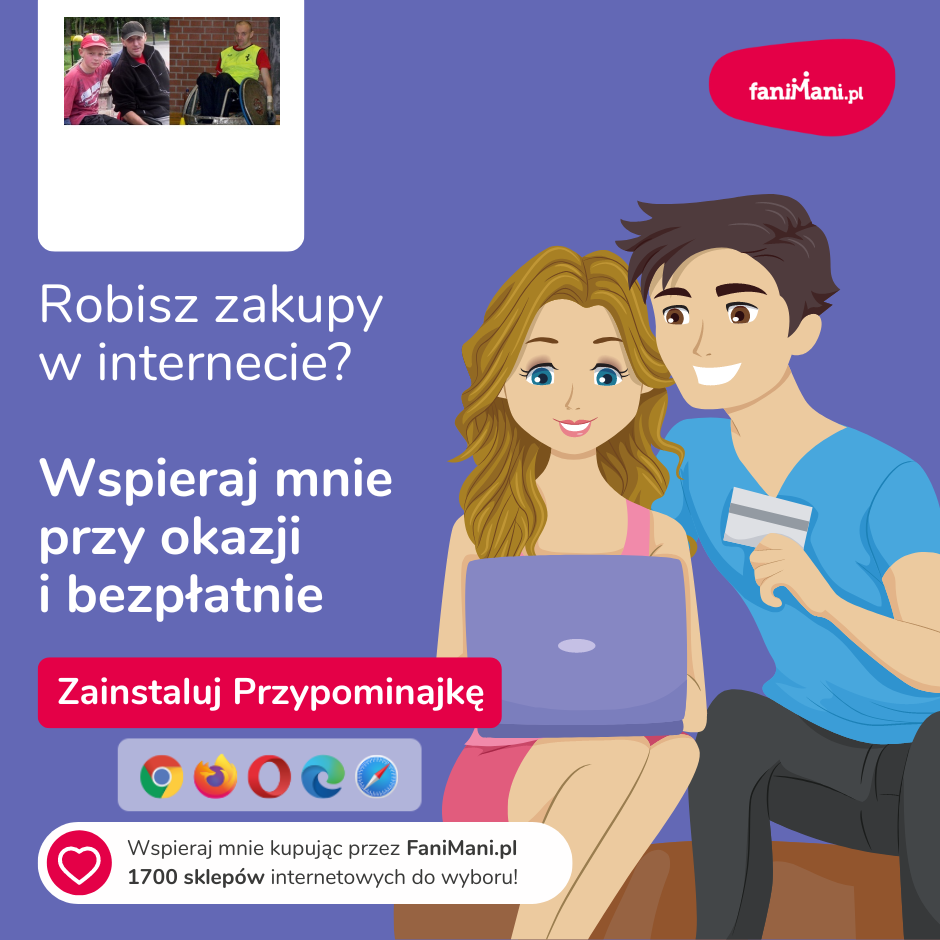 Pomagaj bezpłatnie przy okazji zakupów w internecie Płacisz tyle, co zawsze, a średnio 2,5% wartości Twoich zakupów trafi do organizacji, którą wybierzesz