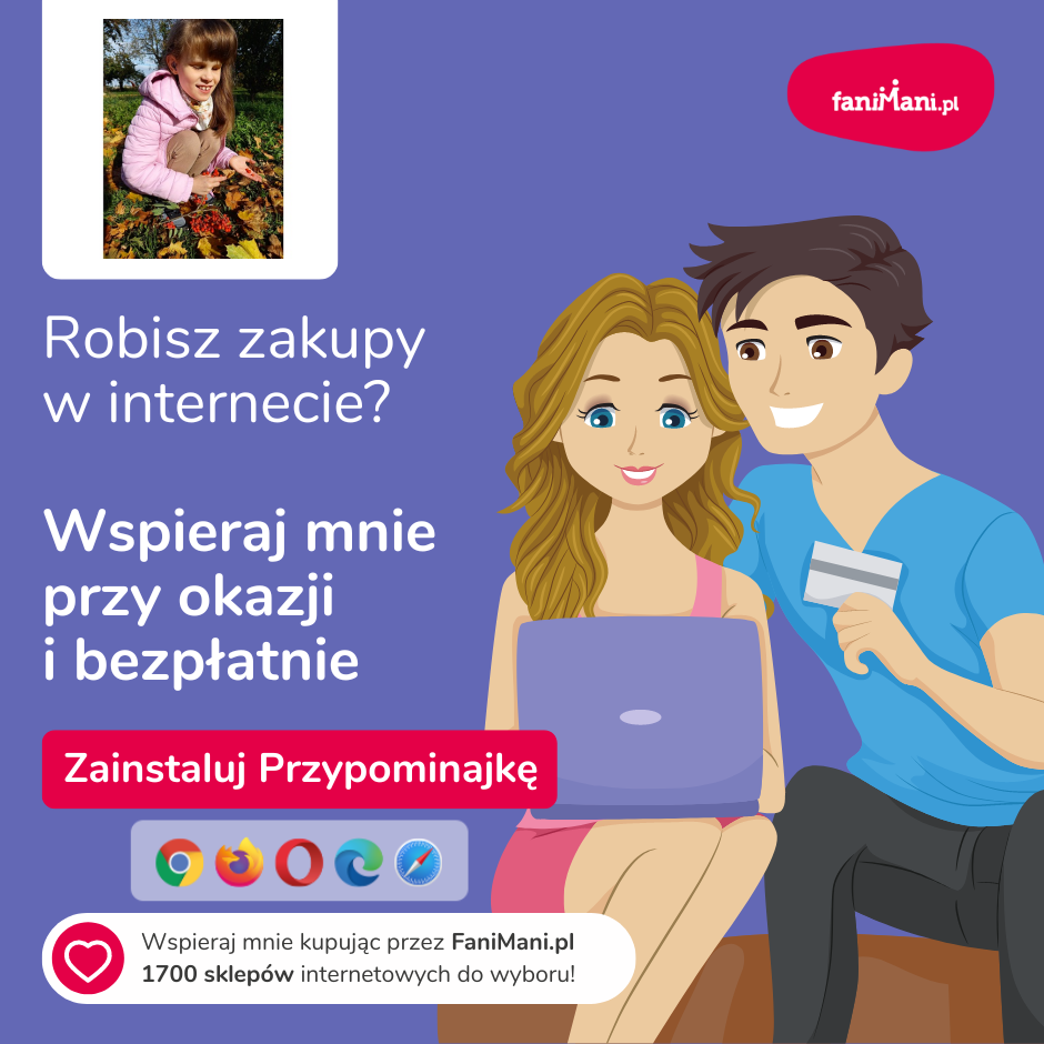 Pomagaj bezpłatnie przy okazji zakupów w internecie Płacisz tyle, co zawsze, a średnio 2,5% wartości Twoich zakupów trafi do organizacji, którą wybierzesz