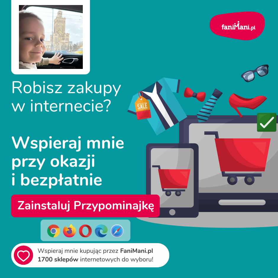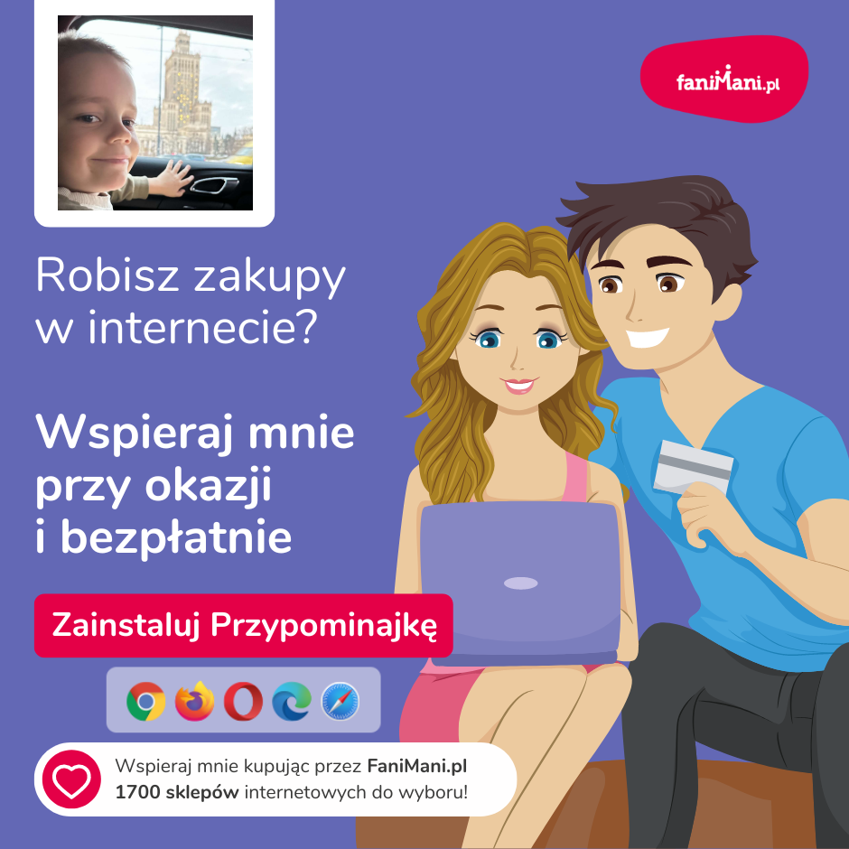Pomagaj bezpłatnie przy okazji zakupów w internecie Płacisz tyle, co zawsze, a średnio 2,5% wartości Twoich zakupów trafi do organizacji, którą wybierzesz