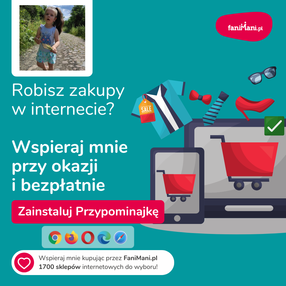 Udostępnij materiały i pomóż Dominika Babińska, 13647 zbierać darowizny od zakupów online