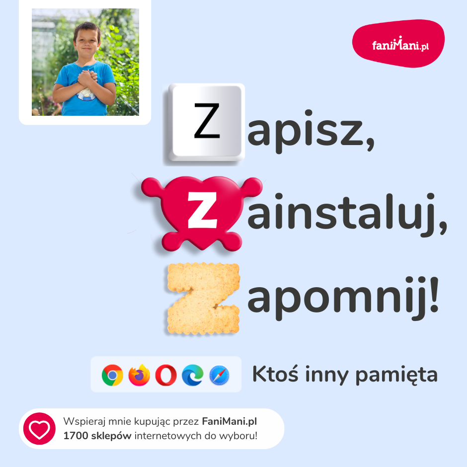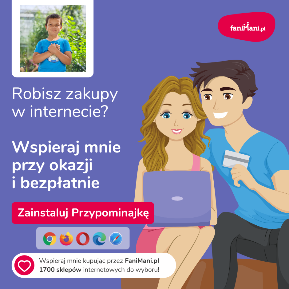 Pomagaj bezpłatnie przy okazji zakupów w internecie Płacisz tyle, co zawsze, a średnio 2,5% wartości Twoich zakupów trafi do organizacji, którą wybierzesz