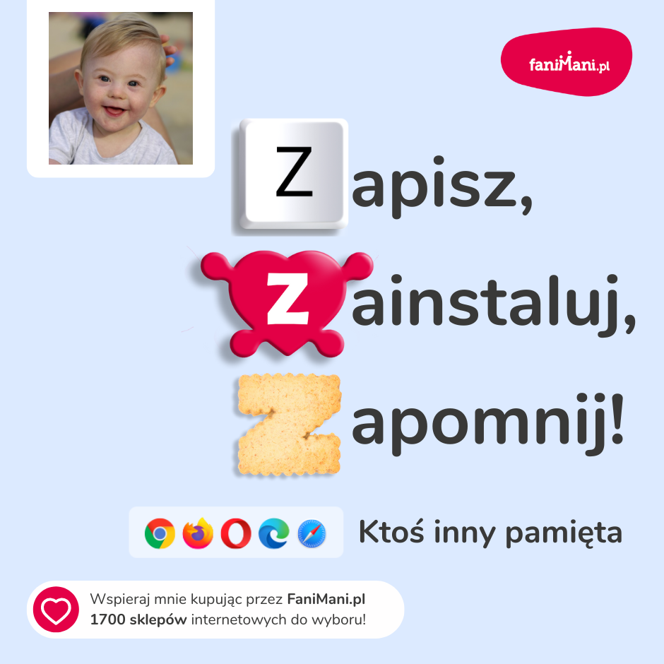 Pomagaj bezpłatnie przy okazji zakupów w internecie Płacisz tyle, co zawsze, a średnio 2,5% wartości Twoich zakupów trafi do organizacji, którą wybierzesz