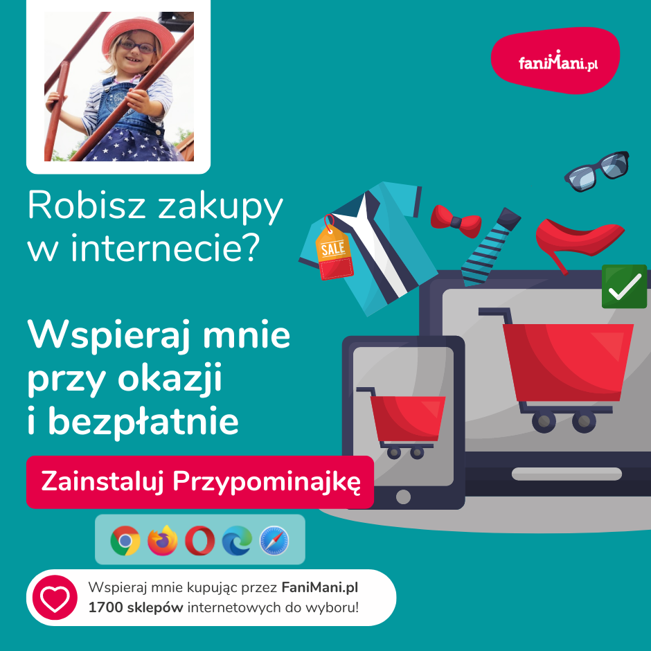 Pomagaj bezpłatnie przy okazji zakupów w internecie Płacisz tyle, co zawsze, a średnio 2,5% wartości Twoich zakupów trafi do organizacji, którą wybierzesz