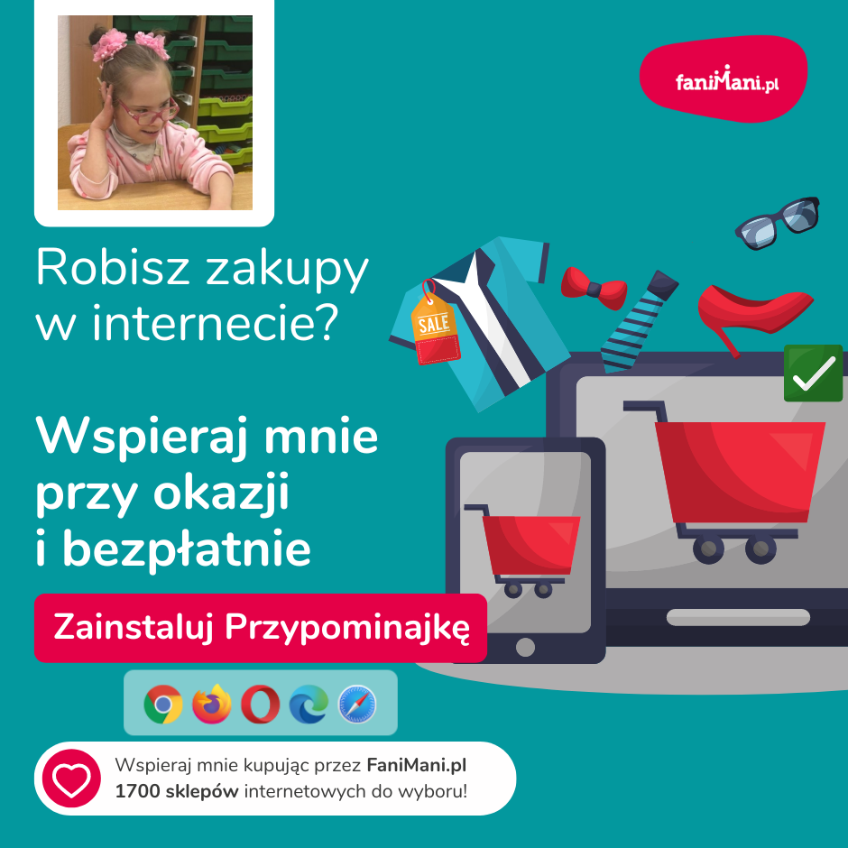 Pomagaj bezpłatnie przy okazji zakupów w internecie Płacisz tyle, co zawsze, a średnio 2,5% wartości Twoich zakupów trafi do organizacji, którą wybierzesz
