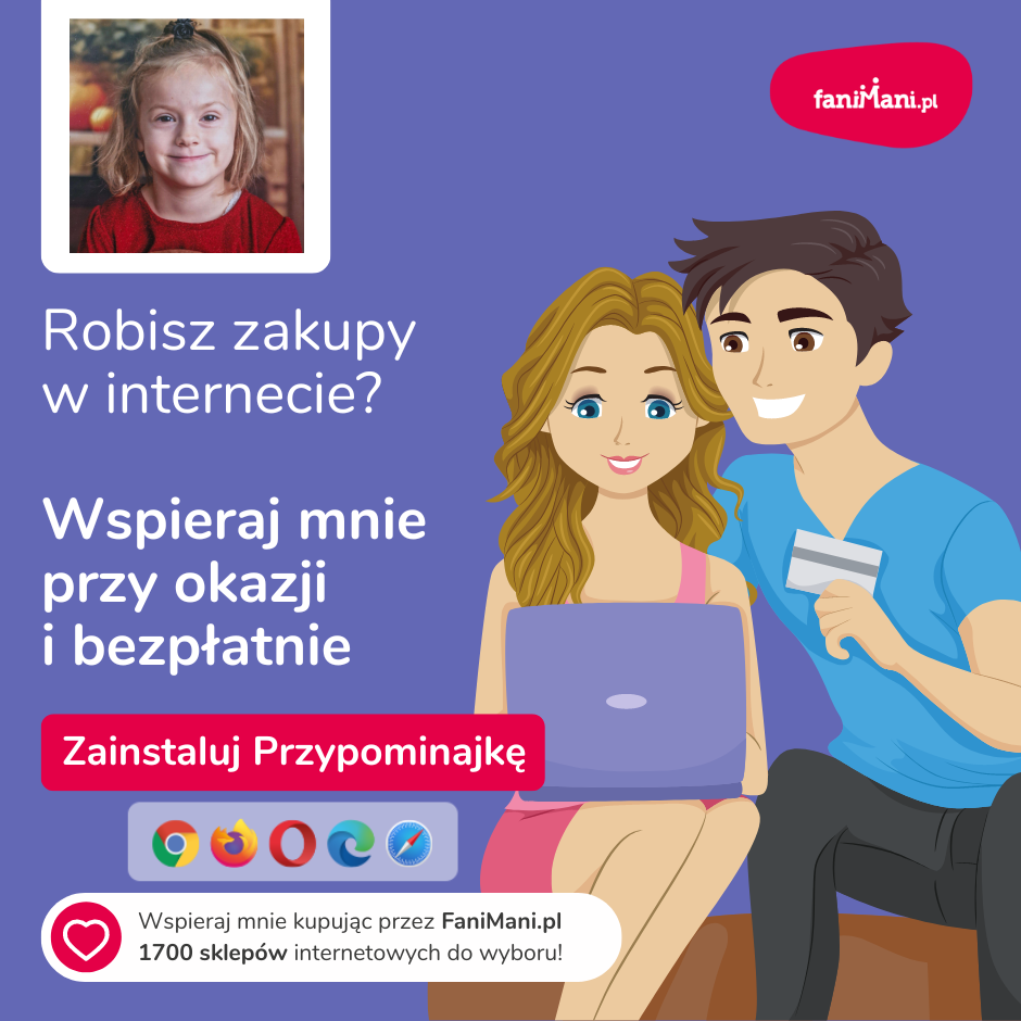 Pomagaj bezpłatnie przy okazji zakupów w internecie Płacisz tyle, co zawsze, a średnio 2,5% wartości Twoich zakupów trafi do organizacji, którą wybierzesz