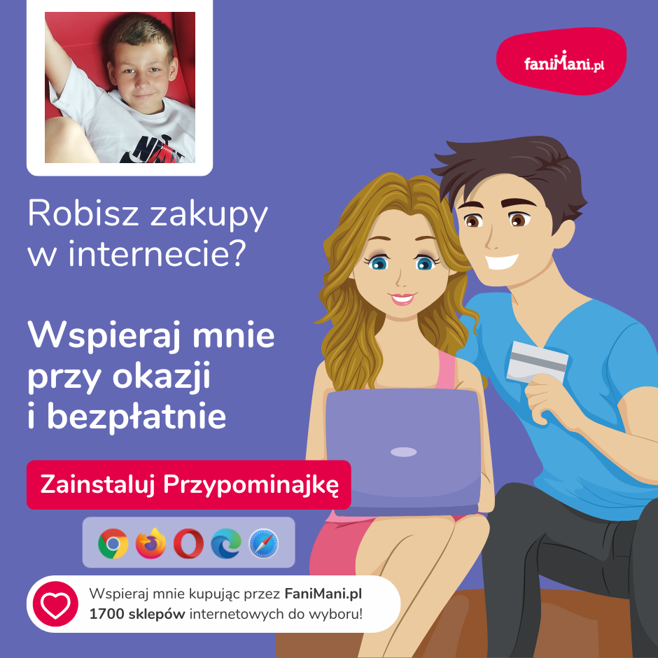 Pomagaj bezpłatnie przy okazji zakupów w internecie Płacisz tyle, co zawsze, a średnio 2,5% wartości Twoich zakupów trafi do organizacji, którą wybierzesz