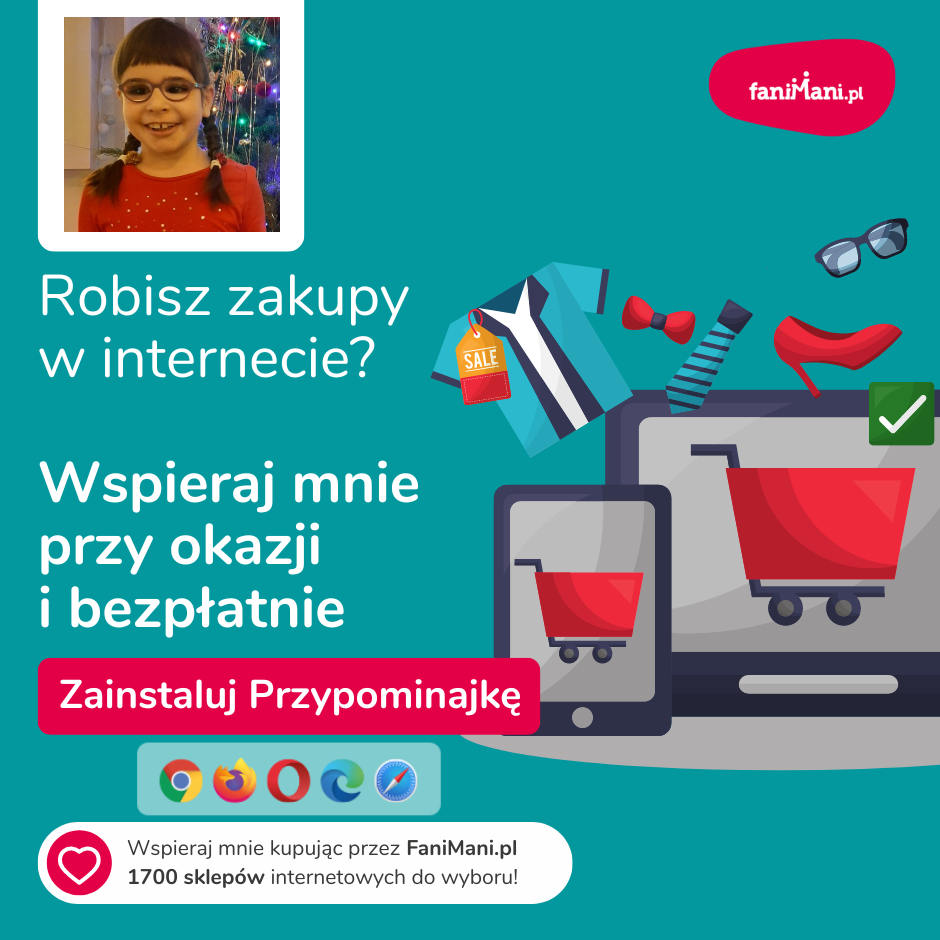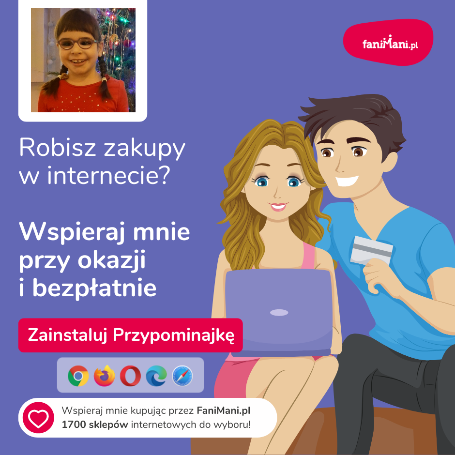 Pomagaj bezpłatnie przy okazji zakupów w internecie Płacisz tyle, co zawsze, a średnio 2,5% wartości Twoich zakupów trafi do organizacji, którą wybierzesz