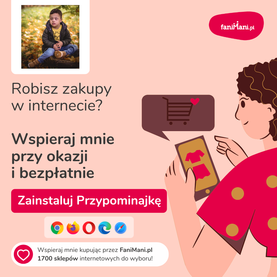 Pomagaj bezpłatnie przy okazji zakupów w internecie Płacisz tyle, co zawsze, a średnio 2,5% wartości Twoich zakupów trafi do organizacji, którą wybierzesz