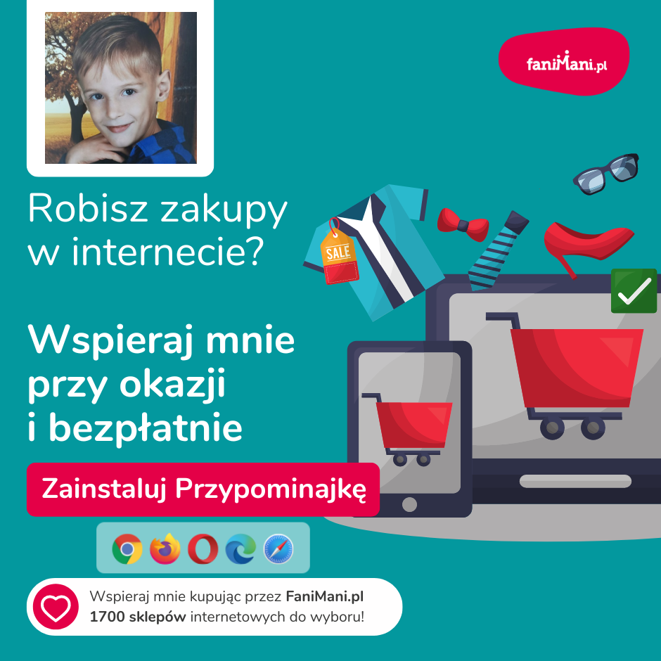 Pomagaj bezpłatnie przy okazji zakupów w internecie Płacisz tyle, co zawsze, a średnio 2,5% wartości Twoich zakupów trafi do organizacji, którą wybierzesz