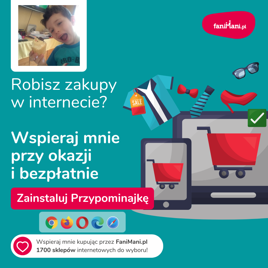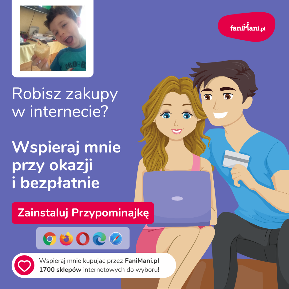 Pomagaj bezpłatnie przy okazji zakupów w internecie Płacisz tyle, co zawsze, a średnio 2,5% wartości Twoich zakupów trafi do organizacji, którą wybierzesz