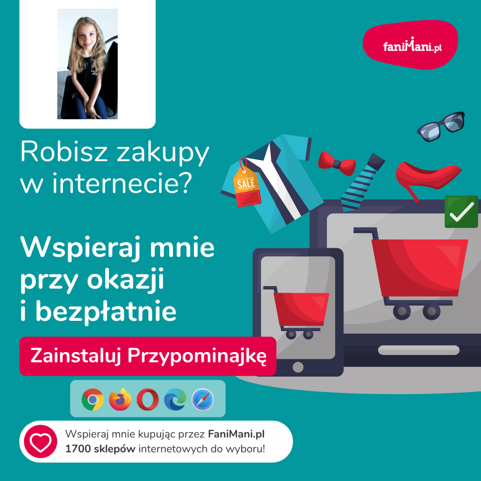 Pomagaj bezpłatnie przy okazji zakupów w internecie Płacisz tyle, co zawsze, a średnio 2,5% wartości Twoich zakupów trafi do organizacji, którą wybierzesz
