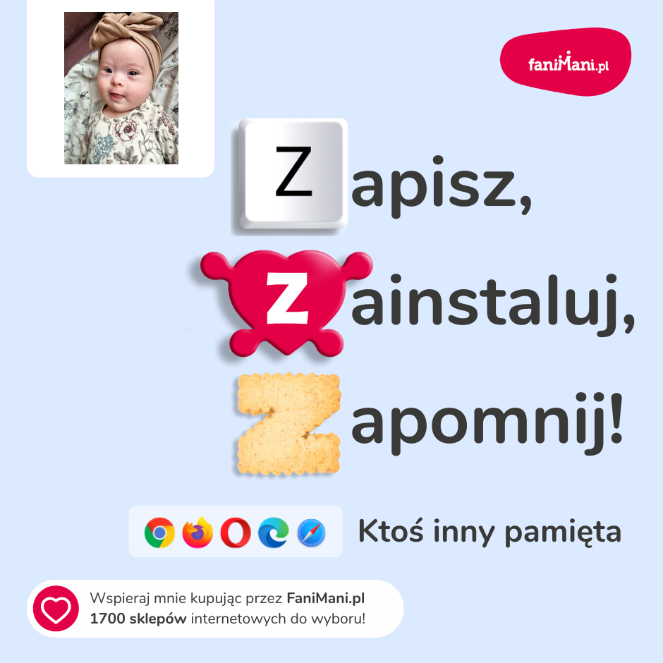 Udostępnij materiały i pomóż 3321 Amelia Jaszczak zbierać darowizny od zakupów online