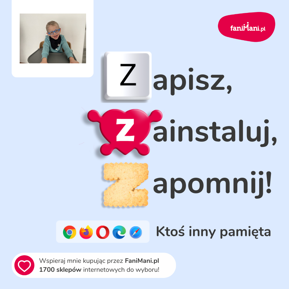 Pomagaj bezpłatnie przy okazji zakupów w internecie Płacisz tyle, co zawsze, a średnio 2,5% wartości Twoich zakupów trafi do organizacji, którą wybierzesz