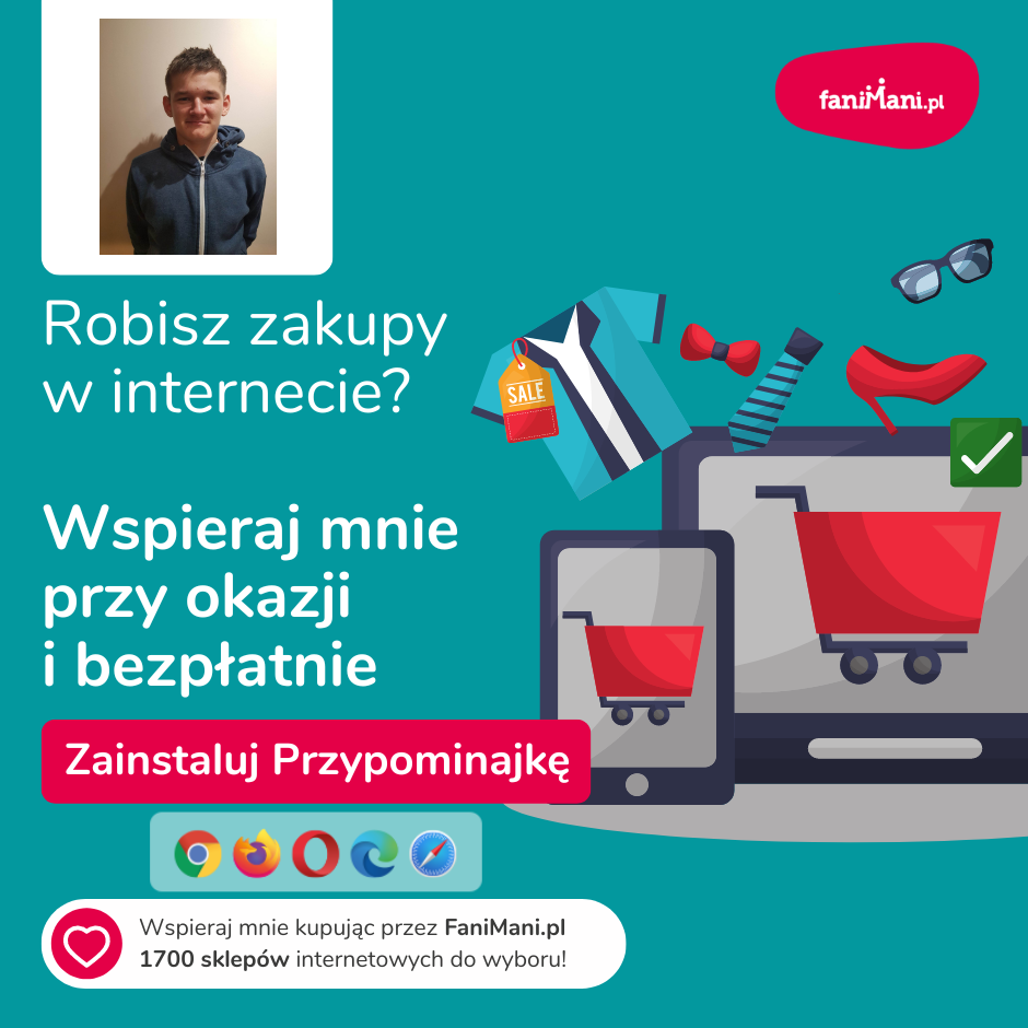 Udostępnij materiały i pomóż 154 Jakub Górny zbierać darowizny od zakupów online