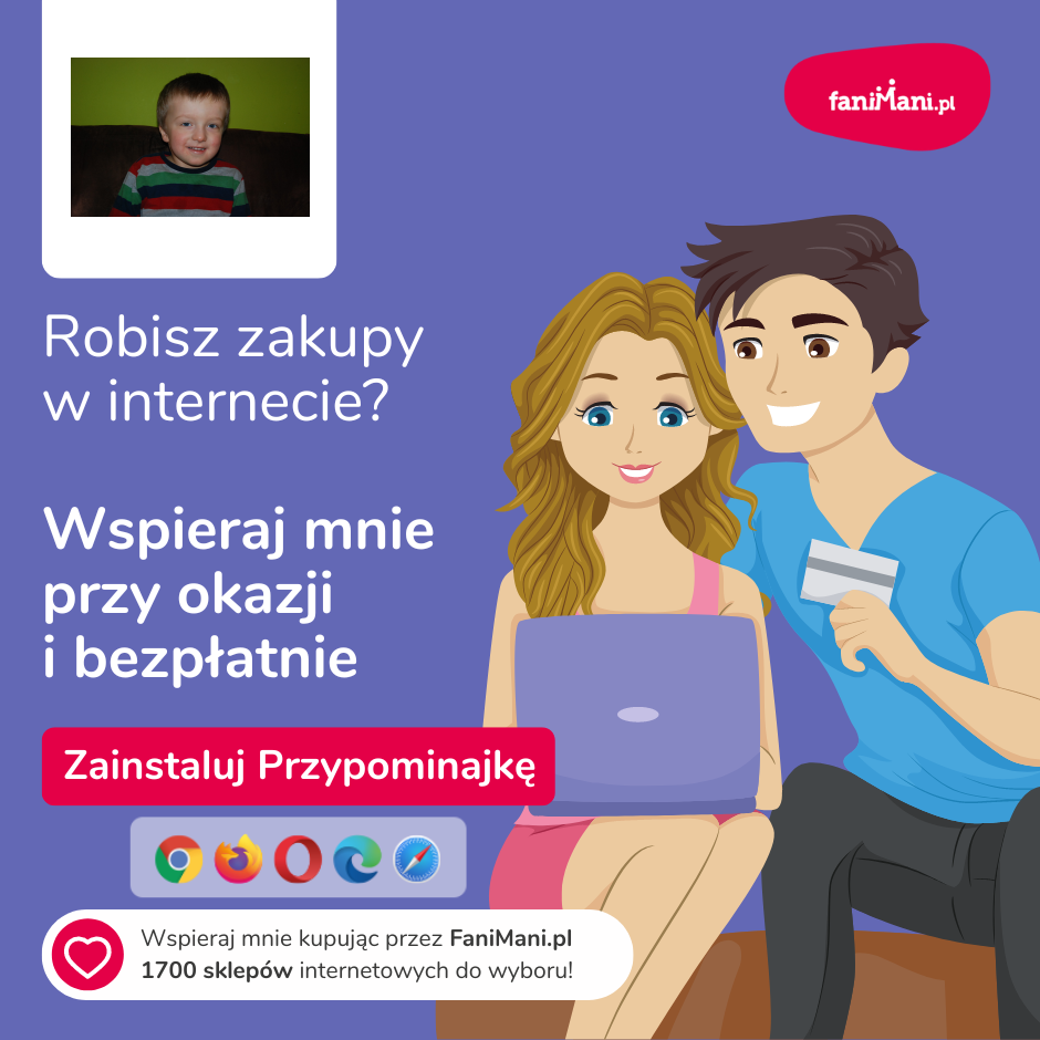 Pomagaj bezpłatnie przy okazji zakupów w internecie Płacisz tyle, co zawsze, a średnio 2,5% wartości Twoich zakupów trafi do organizacji, którą wybierzesz