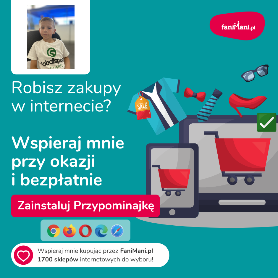 Pomagaj bezpłatnie przy okazji zakupów w internecie Płacisz tyle, co zawsze, a średnio 2,5% wartości Twoich zakupów trafi do organizacji, którą wybierzesz