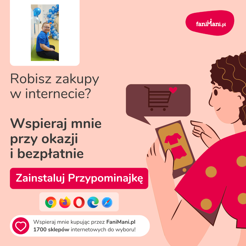 Pomagaj bezpłatnie przy okazji zakupów w internecie Płacisz tyle, co zawsze, a średnio 2,5% wartości Twoich zakupów trafi do organizacji, którą wybierzesz