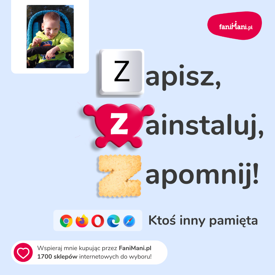 Pomagaj bezpłatnie przy okazji zakupów w internecie Płacisz tyle, co zawsze, a średnio 2,5% wartości Twoich zakupów trafi do organizacji, którą wybierzesz