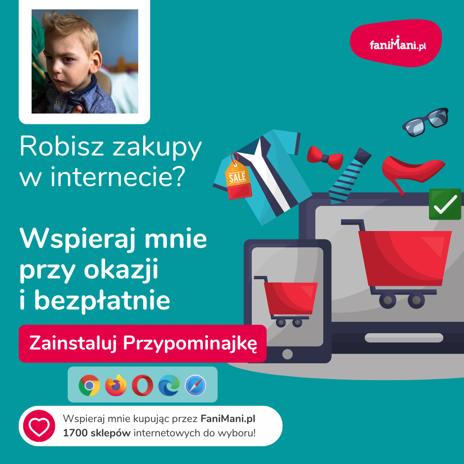 Pomagaj bezpłatnie przy okazji zakupów w internecie Płacisz tyle, co zawsze, a średnio 2,5% wartości Twoich zakupów trafi do organizacji, którą wybierzesz