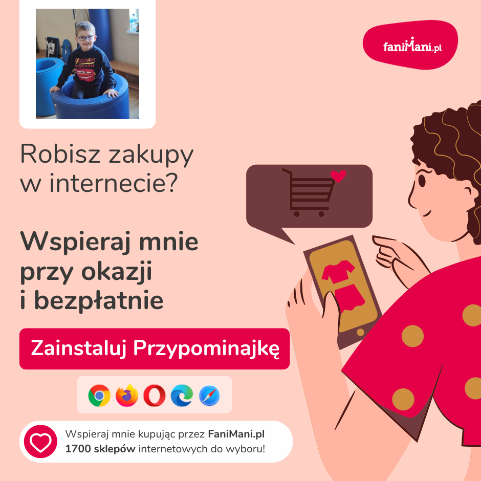 Pomagaj bezpłatnie przy okazji zakupów w internecie Płacisz tyle, co zawsze, a średnio 2,5% wartości Twoich zakupów trafi do organizacji, którą wybierzesz