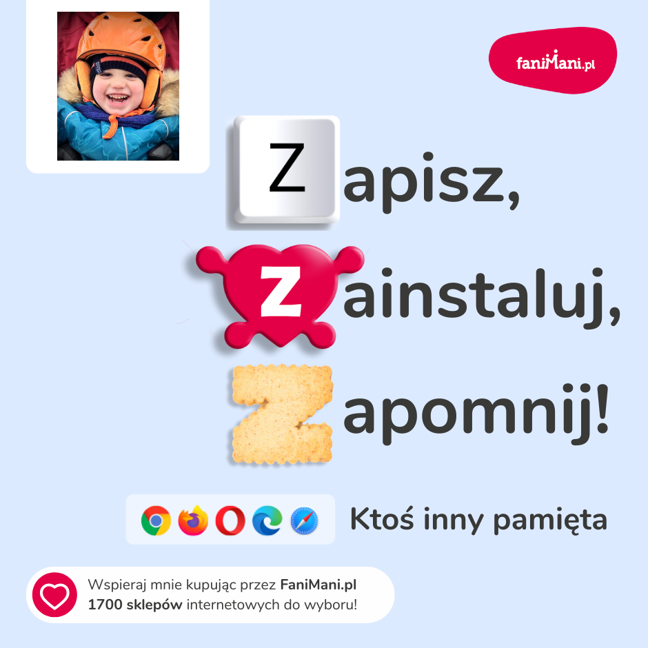 Pomagaj bezpłatnie przy okazji zakupów w internecie Płacisz tyle, co zawsze, a średnio 2,5% wartości Twoich zakupów trafi do organizacji, którą wybierzesz