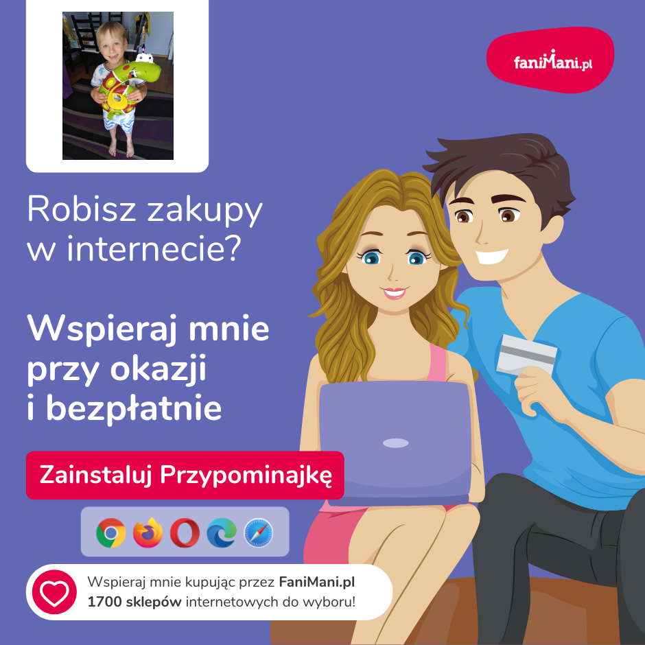 Pomagaj bezpłatnie przy okazji zakupów w internecie Płacisz tyle, co zawsze, a średnio 2,5% wartości Twoich zakupów trafi do organizacji, którą wybierzesz