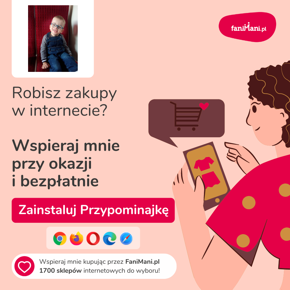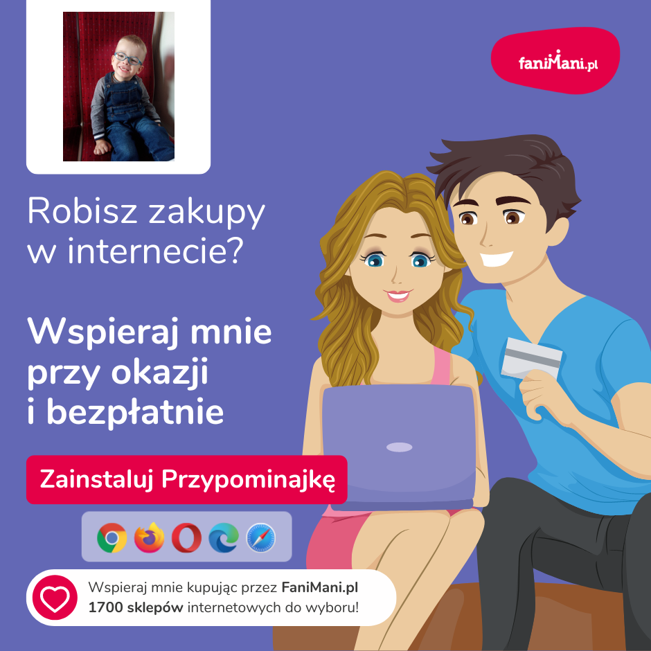 Pomagaj bezpłatnie przy okazji zakupów w internecie Płacisz tyle, co zawsze, a średnio 2,5% wartości Twoich zakupów trafi do organizacji, którą wybierzesz