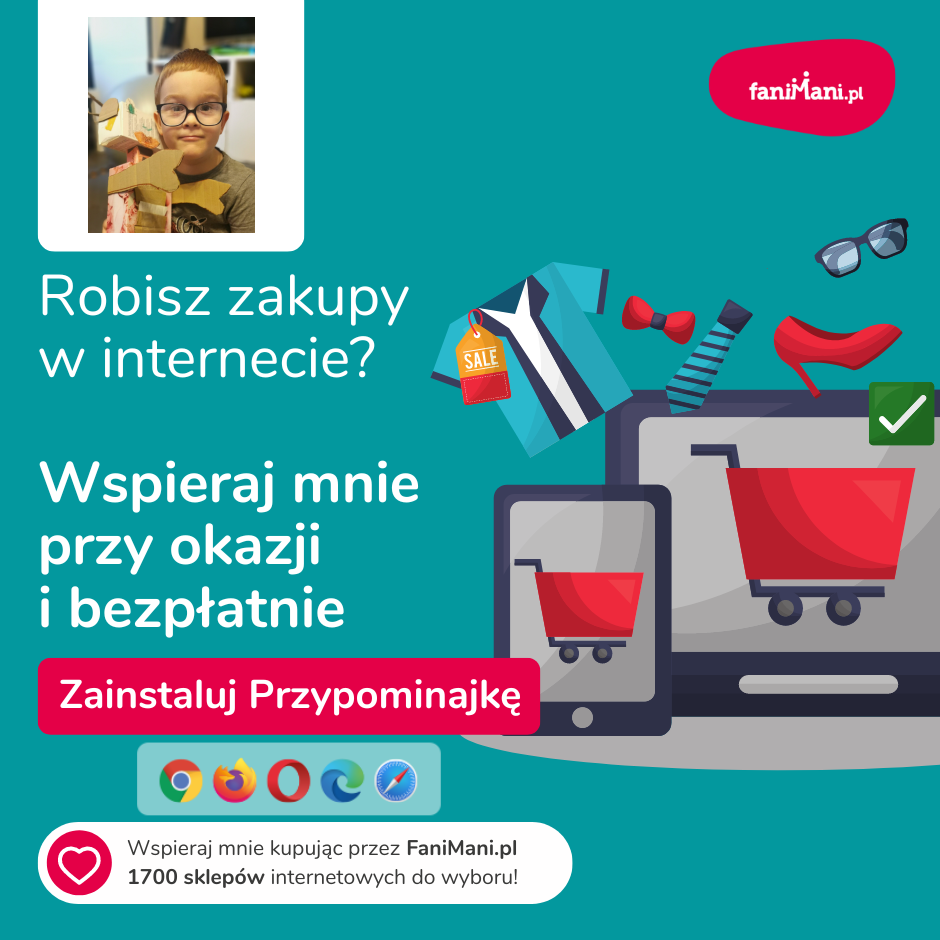 Pomagaj bezpłatnie przy okazji zakupów w internecie Płacisz tyle, co zawsze, a średnio 2,5% wartości Twoich zakupów trafi do organizacji, którą wybierzesz