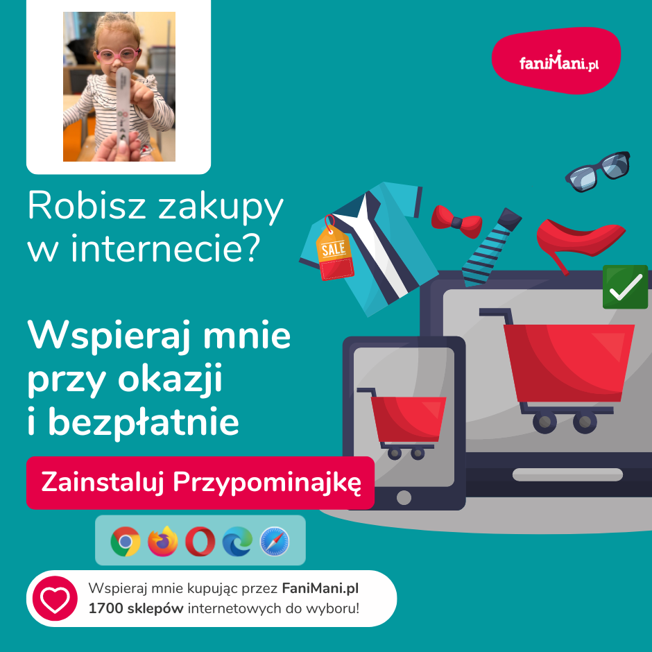Pomagaj bezpłatnie przy okazji zakupów w internecie Płacisz tyle, co zawsze, a średnio 2,5% wartości Twoich zakupów trafi do organizacji, którą wybierzesz
