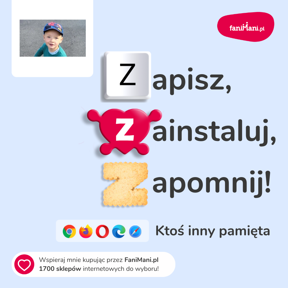Pomagaj bezpłatnie przy okazji zakupów w internecie Płacisz tyle, co zawsze, a średnio 2,5% wartości Twoich zakupów trafi do organizacji, którą wybierzesz