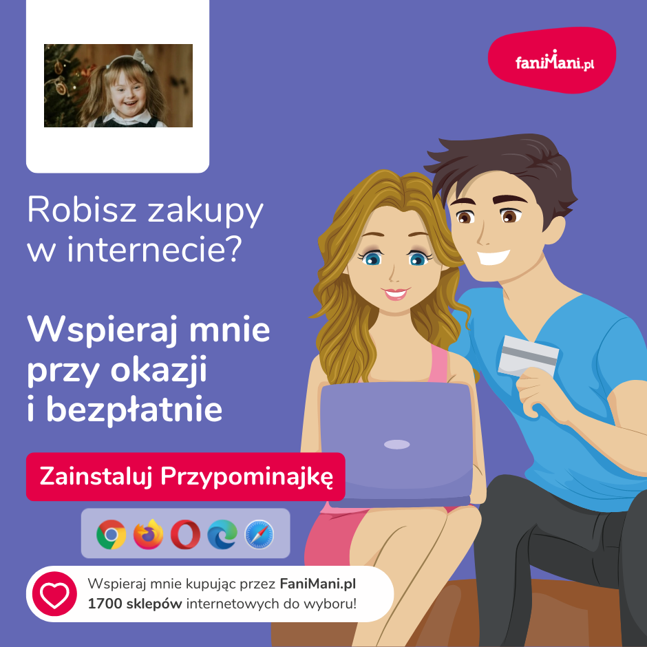 Pomagaj bezpłatnie przy okazji zakupów w internecie Płacisz tyle, co zawsze, a średnio 2,5% wartości Twoich zakupów trafi do organizacji, którą wybierzesz