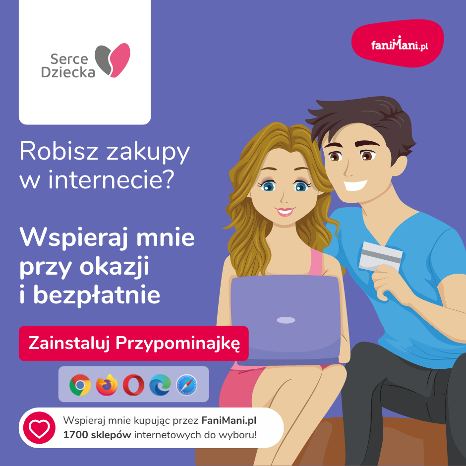 Pomagaj bezpłatnie przy okazji zakupów w internecie Płacisz tyle, co zawsze, a średnio 2,5% wartości Twoich zakupów trafi do organizacji, którą wybierzesz