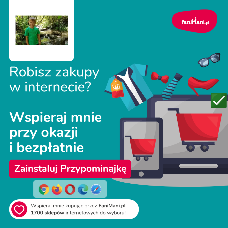 Pomagaj bezpłatnie przy okazji zakupów w internecie Płacisz tyle, co zawsze, a średnio 2,5% wartości Twoich zakupów trafi do organizacji, którą wybierzesz