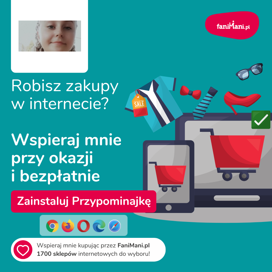 Udostępnij materiały i pomóż Oliwia Wrótniak zbierać darowizny od zakupów online