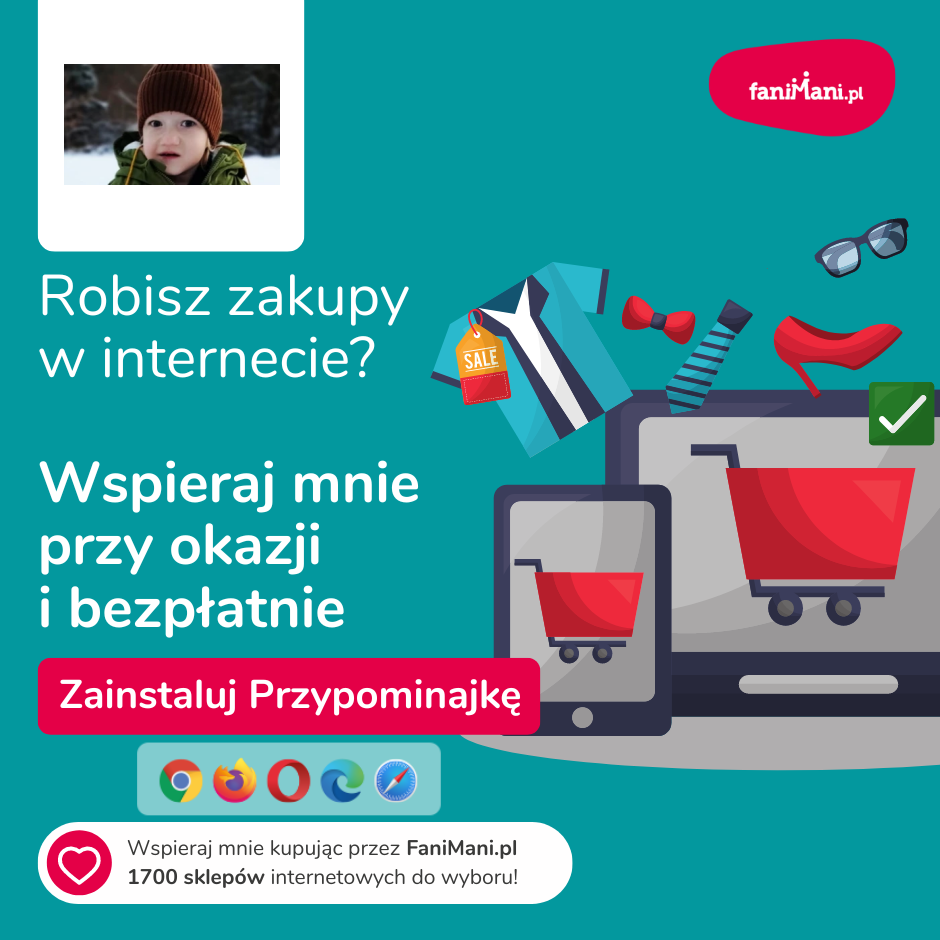 Pomagaj bezpłatnie przy okazji zakupów w internecie Płacisz tyle, co zawsze, a średnio 2,5% wartości Twoich zakupów trafi do organizacji, którą wybierzesz