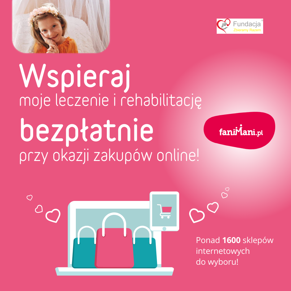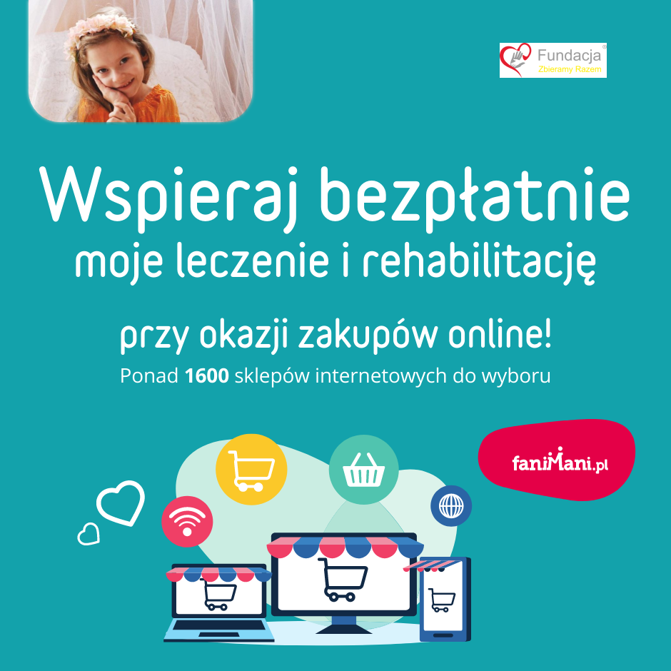Udostępnij materiały i pomóż Pomóżmy małej, dzielnej Zuzi chodzić samodzielnie zbierać darowizny od zakupów online