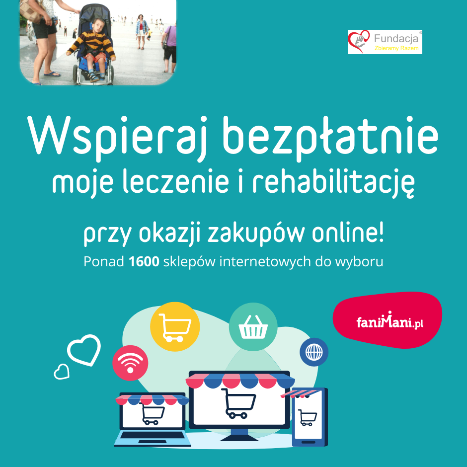 Udostępnij materiały i pomóż Uciec od choroby do radosnego świata dziecka zbierać darowizny od zakupów online