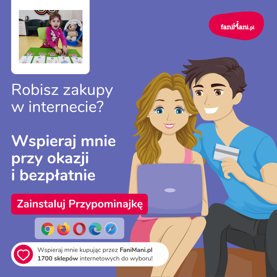 Pomagaj bezpłatnie przy okazji zakupów w internecie Płacisz tyle, co zawsze, a średnio 2,5% wartości Twoich zakupów trafi do organizacji, którą wybierzesz