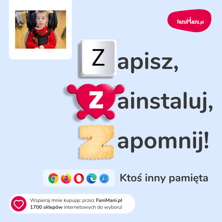 Pomagaj bezpłatnie przy okazji zakupów w internecie Płacisz tyle, co zawsze, a średnio 2,5% wartości Twoich zakupów trafi do organizacji, którą wybierzesz