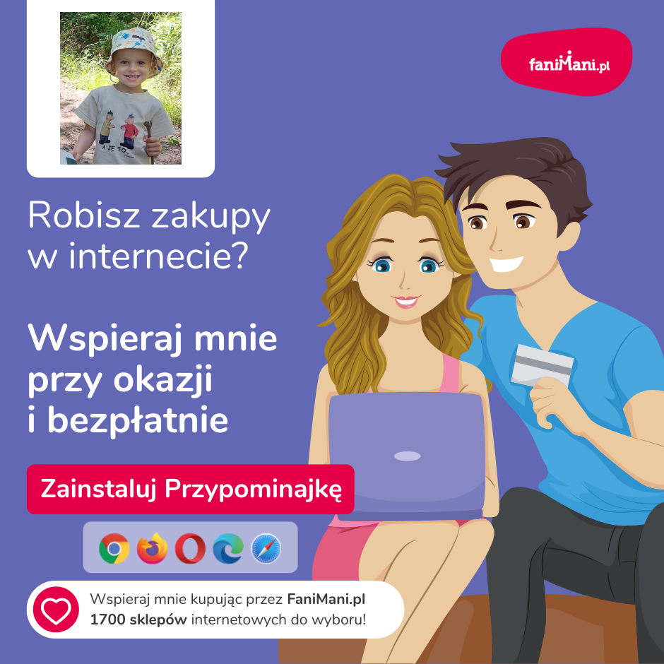 Pomagaj bezpłatnie przy okazji zakupów w internecie Płacisz tyle, co zawsze, a średnio 2,5% wartości Twoich zakupów trafi do organizacji, którą wybierzesz