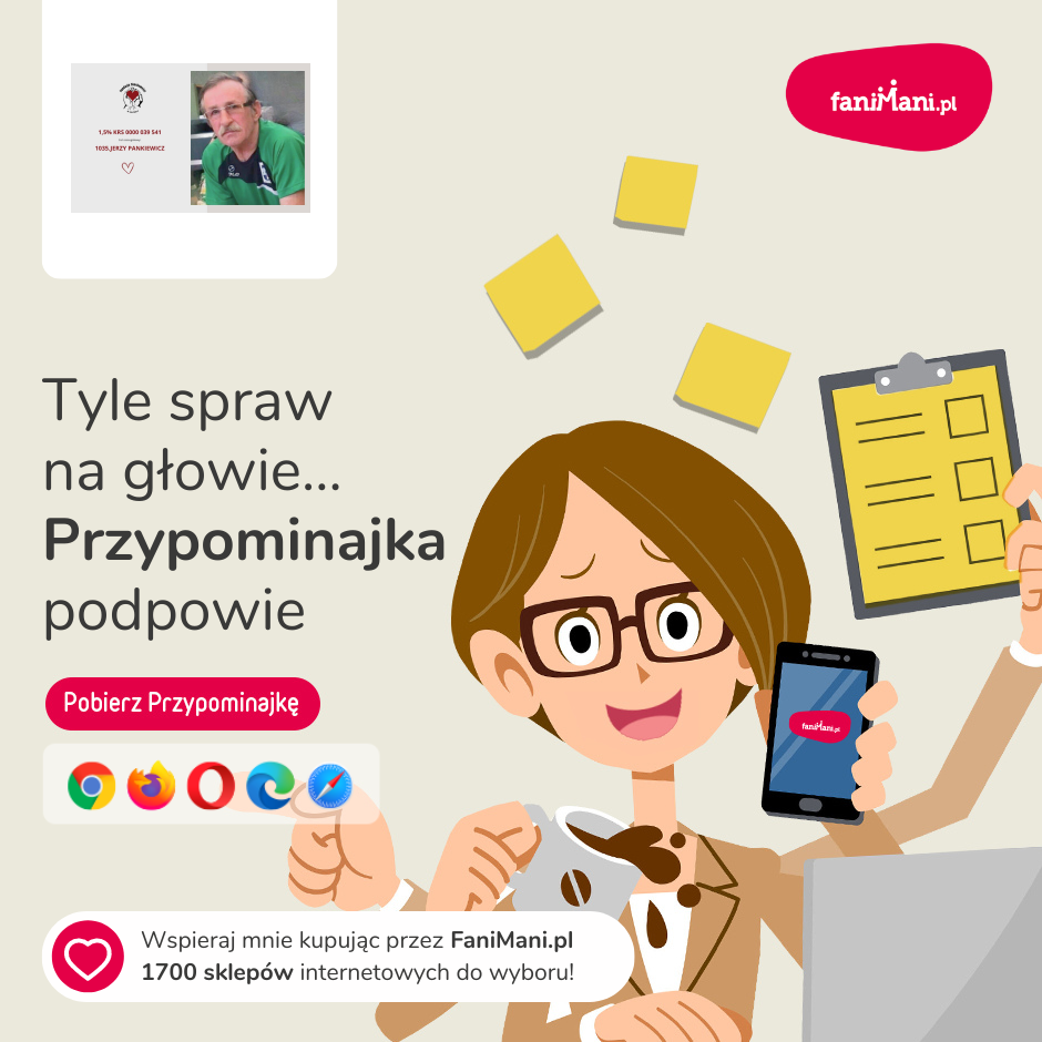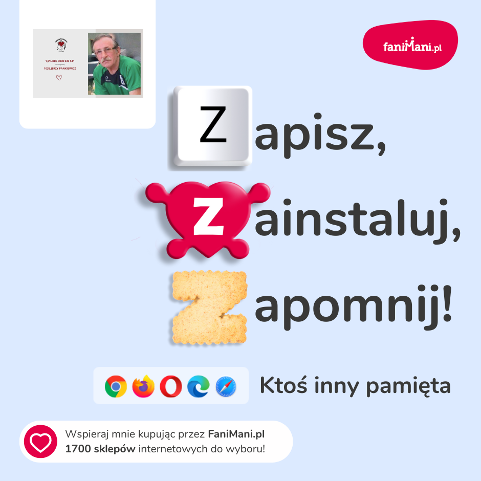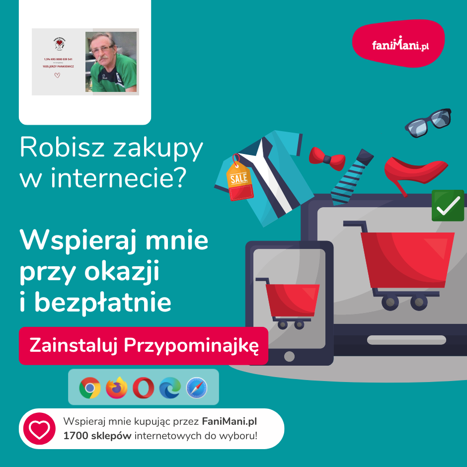 Udostępnij materiały i pomóż 1035.JERZY PANKIEWICZ zbierać darowizny od zakupów online