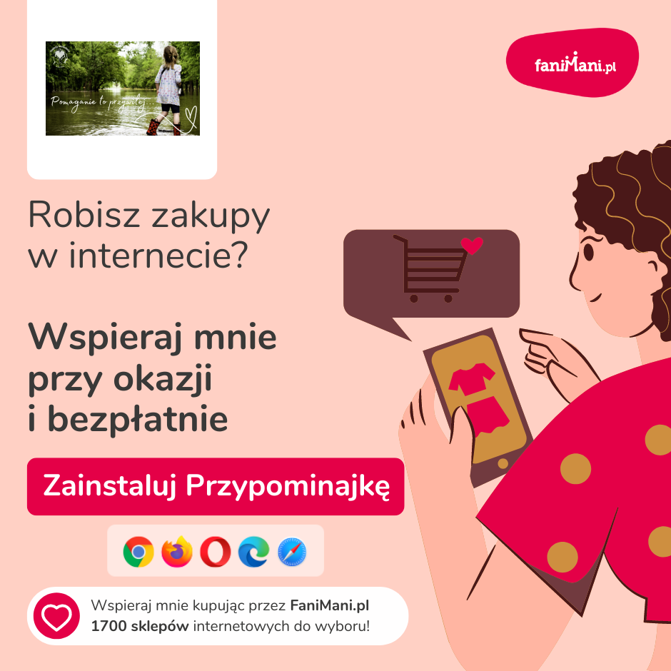 Pomagaj bezpłatnie przy okazji zakupów w internecie Płacisz tyle, co zawsze, a średnio 2,5% wartości Twoich zakupów trafi do organizacji, którą wybierzesz