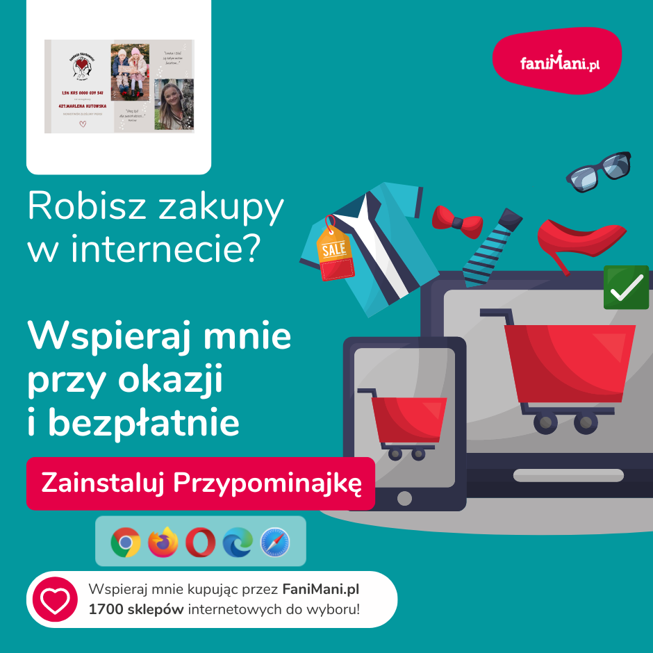 Udostępnij materiały i pomóż 427.MARLENA KUTOWSKA zbierać darowizny od zakupów online