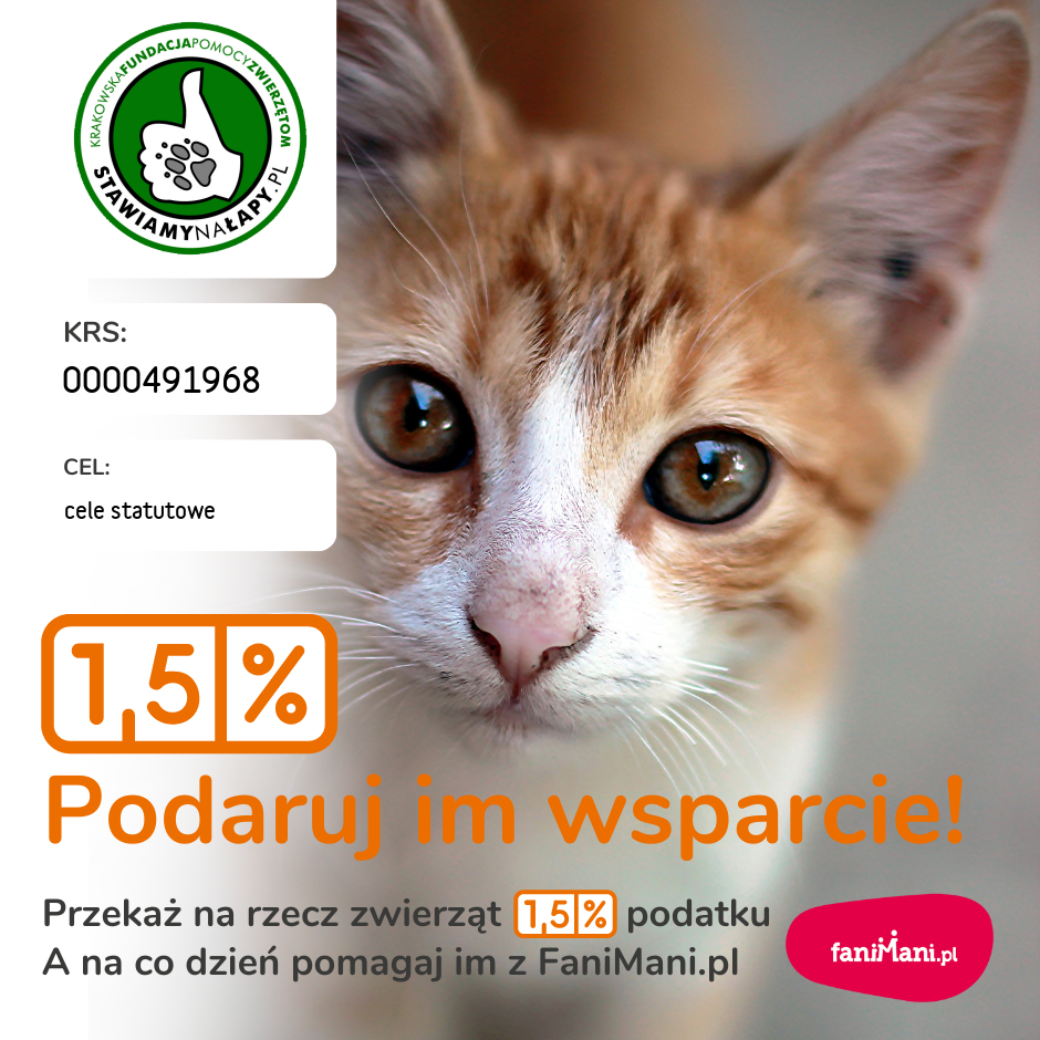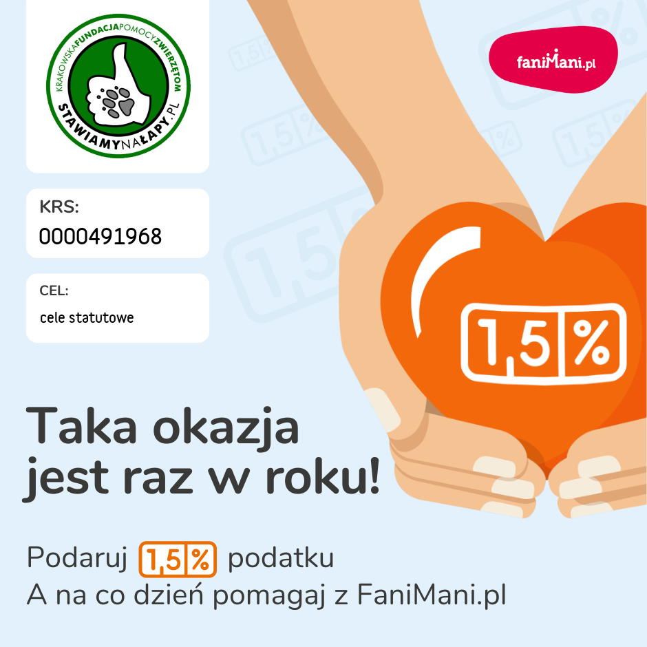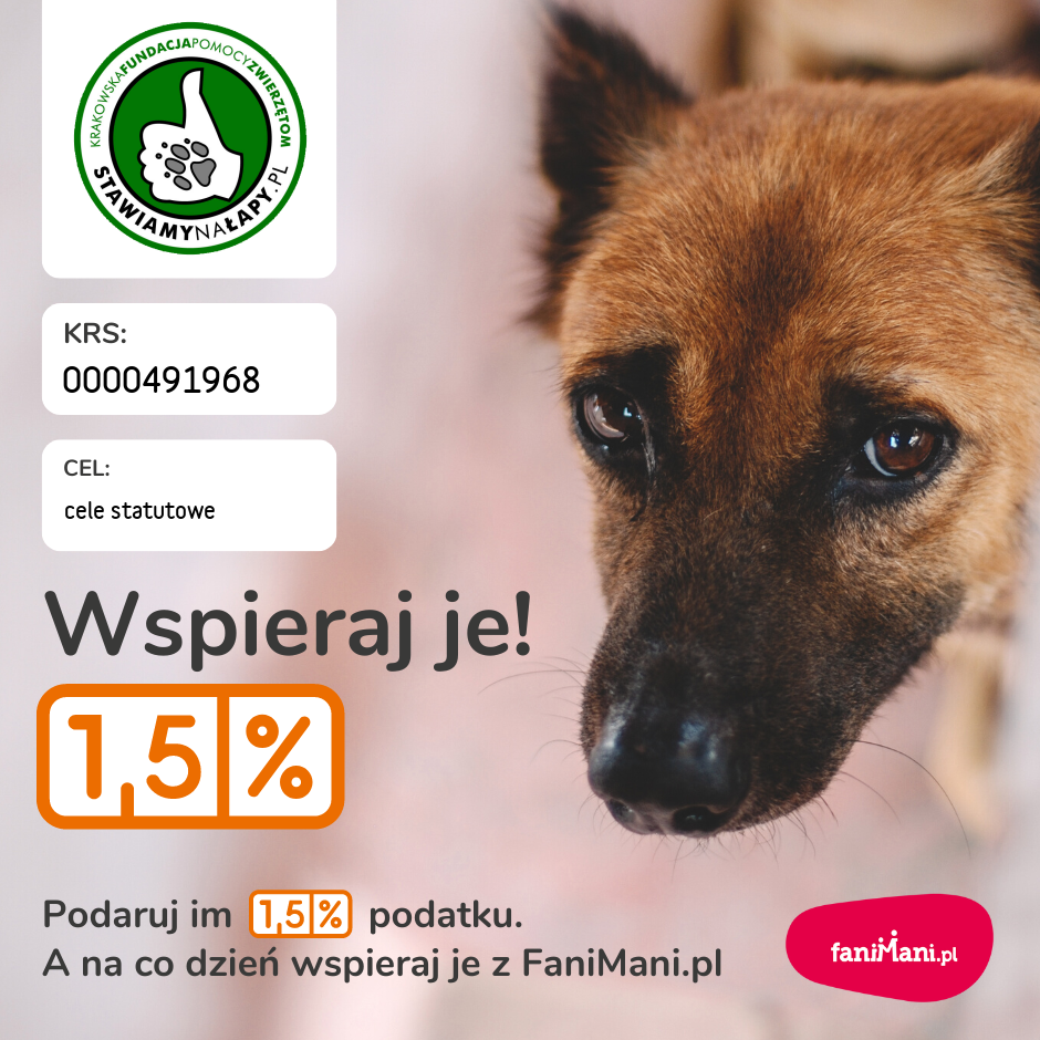Teraz wspierasz: Krakowska Fundacja Pomocy Zwierzętom Stawiamy na Łapy