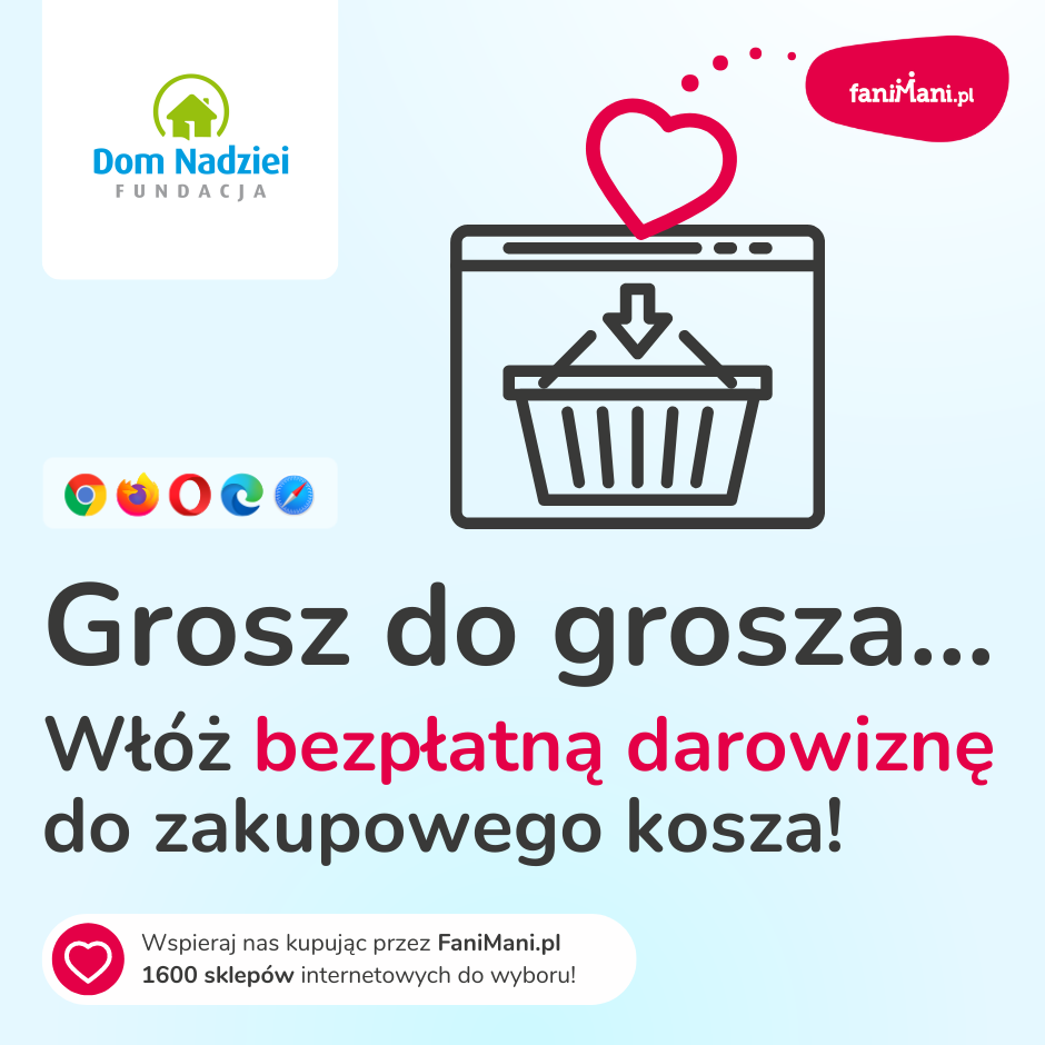 Grosz do grosza... Włóż bezpłatną darowiznę do zakupowego kosza!