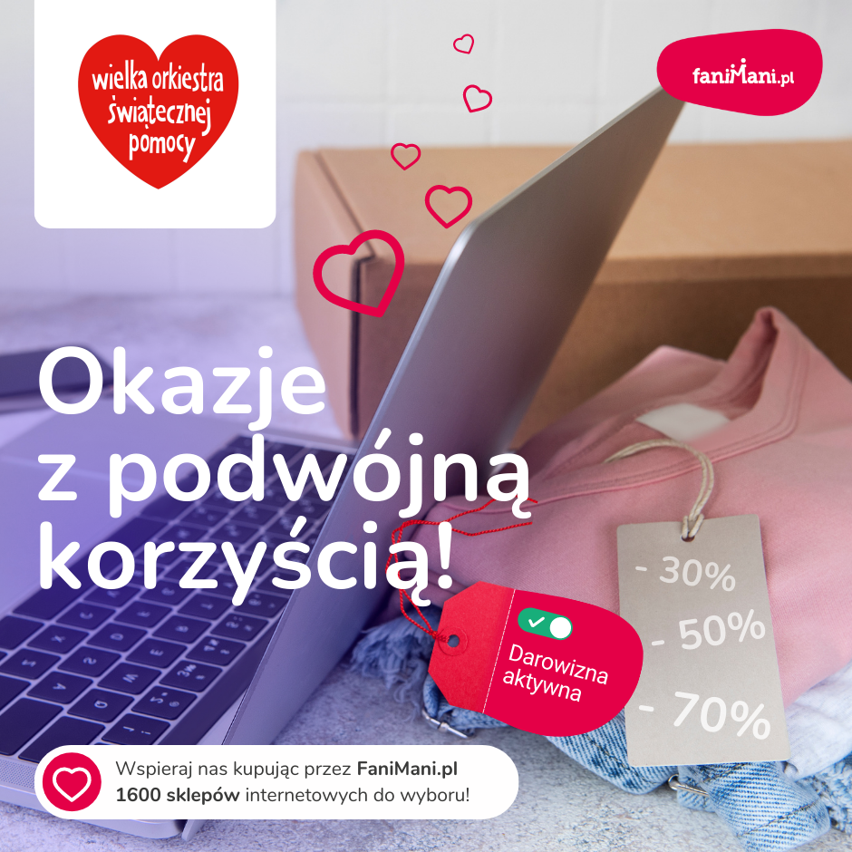 Pomagaj bezpłatnie przy okazji zakupów w internecie Płacisz tyle, co zawsze, a średnio 2,5% wartości Twoich zakupów trafi do organizacji, którą wybierzesz