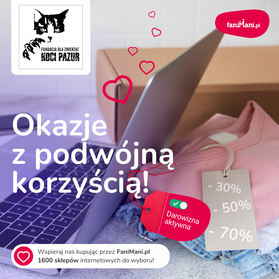 W każdym miesiącu są okazje do zakupów, które mogą wygenerować darowizny dla Was. Są to okazje związane ze specjalnymi dniami (jak dzień kobiet, dziecka etc.) okazje codzienne - np. zakupy do biura, dla zwierząt, zakupy codzienne, a także takie okazje jak rezerwacje urlopów, zakup sprzętu sportowego czy zakupy świąteczne.